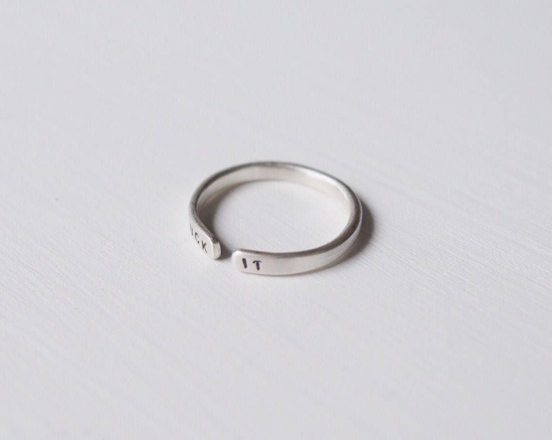 This ring has been designed to egg you on in moments of uncertainty. It is 2mm wide and has been hand forged and hand stamped with tiny 1mm letters. It's perfect for stacking too!