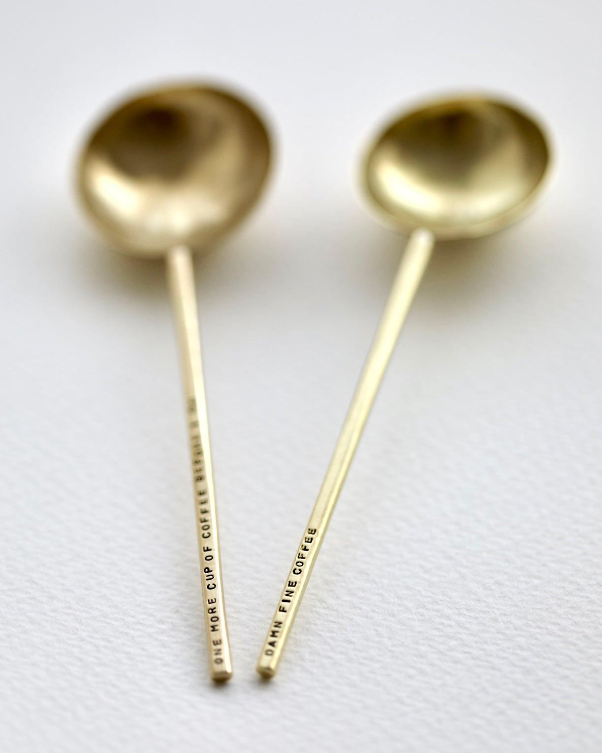A hand forged, solid brass spoon or coffee scoop. The handle can be personalised with any wording that you like.