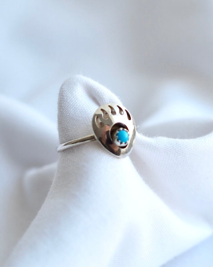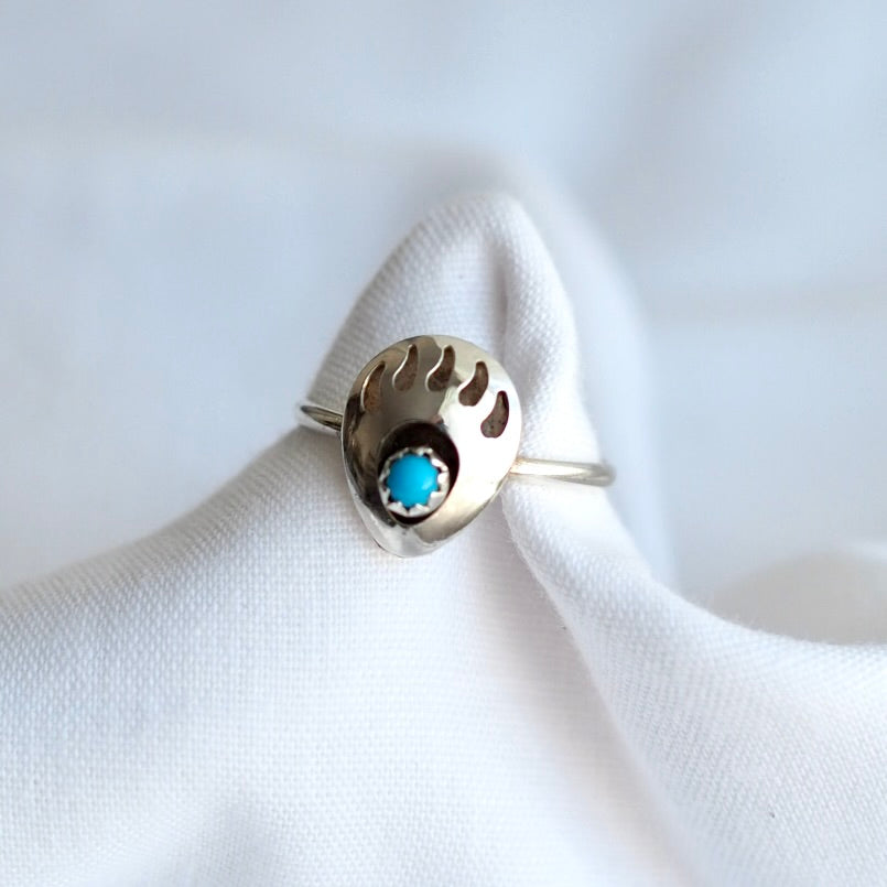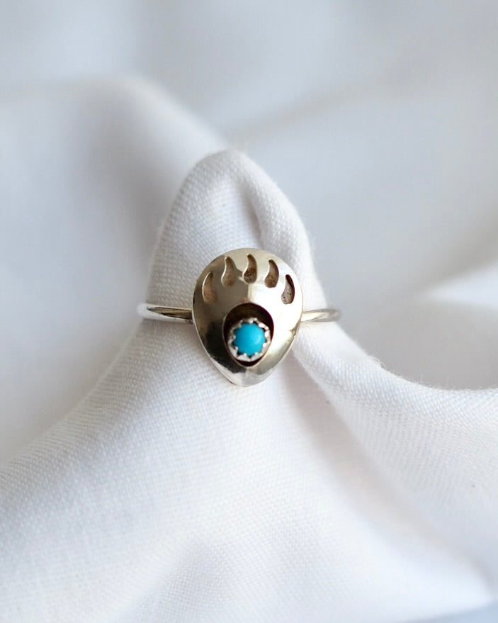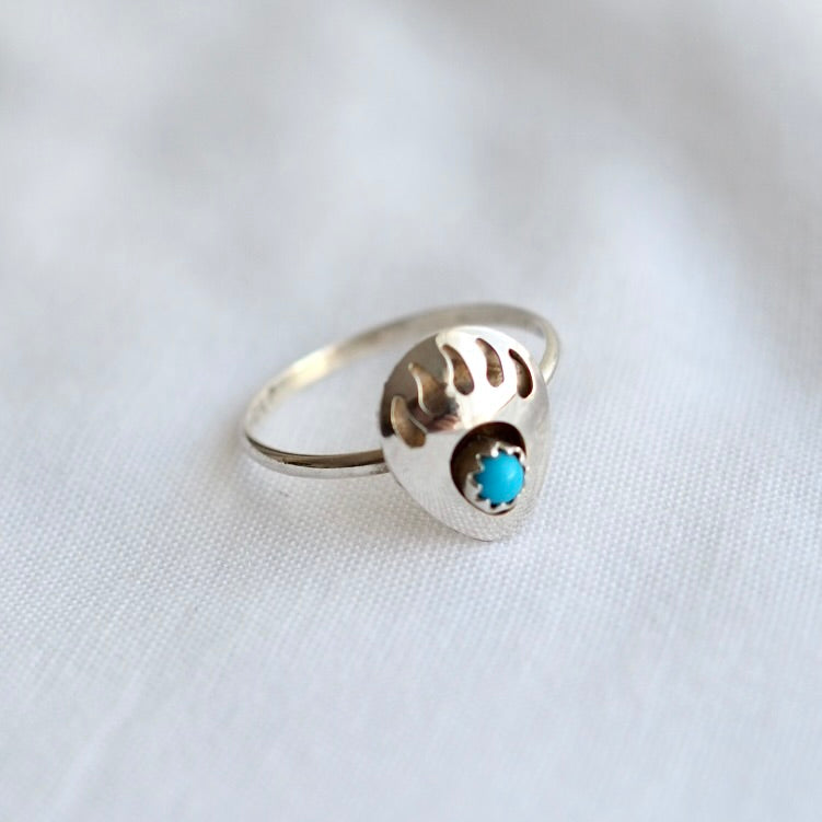 A vintage bear claw turquoise and silver ring in size P (UK ring size). A really cute piece in great vintage condition.